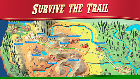 西进拓荒是游戏的核心冒险玩法。玩家需要组建车队,管理包括食物、药品、弹药在内的关键补给,在横跨大陆的地图上选择行进路线。途中需应对河流渡口、山路险阻等地理挑战,并处理随机发生的各类事件,目标是将队伍尽可能完好地带往新的定居点。
