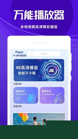 4K循环播放器是一款专为本地影音娱乐设计的智能播放工具,能够自动扫描设备内部存储与外部扩展空间,精准识别并导入MP4、MKV、AVI、MOV、FLV等主流格式的音视频文件,构建出结构清晰、易于浏览的完整媒体库,采用高效的核心解码引擎,无需预先转码即可直接流畅播放4K超高清乃至更高分辨率的视频内容,确保画面细节无损呈现,色彩还原准确,集成了强大的文件管理能力,支持按文件类型、添加日期或自定义标签进行多维度分类归档,提供可靠的加密保护功能,用户可为私人文件夹设置独立访问密码,有效守护个人隐私。其智能记忆系统能自动保存每一部影片的观看进度,下次打开时实现无缝续播,极大地提升了连续观影体验。无论是管理海量媒体资源、享受高品质视觉盛宴,还是构建安全的私人娱乐空间,4K循环播放器都提供了一站式的高效解决方案。