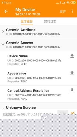 GATT服务浏览器:成功连接设备后,可以清晰浏览其提供的所有GATT服务、特征值和描述符的层级结构,并查看每个属性的详细UUID、权限及属性值。