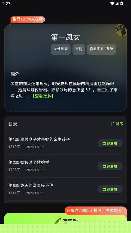 长篇连载章节辅助:支持多章节连续创作,用户可为每一章提供简要提纲,AI负责填充丰满的细节和推进情节,帮助作者保持稳定的更新节奏。