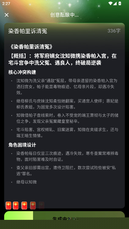 角色与场景深度刻画:提供专门的角色生成器和场景描写工具,用户设定基本属性(如性格、外貌、背景),AI便能生成立体的人物小传或富有画面感的场景描述。