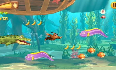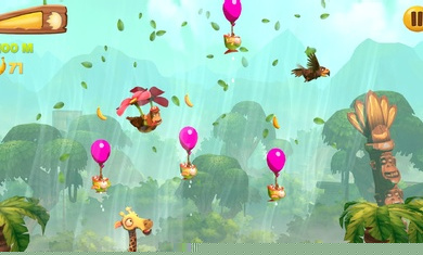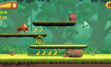 本作作为系列的正统续篇,在承袭前作爽快跑酷内核的基础上,进行了全方位的拓展与深化。游戏构建了一个更为广阔且生机勃勃的冒险世界,主角香蕉金刚的旅程不再局限于传统的横向奔袭,而是融入了多层次的纵向空间探索。开发者着重强化了场景的互动性与沉浸感,奔跑途中遇到的各类生物不仅是障碍或背景,更可能成为助力冒险的关键伙伴。解救被困的动物后们会以独特的方式回报玩家,提供阶段性的能力辅助。游戏的经济系统围绕金刚币展开,玩家可以通过挑战关卡获得货币,在丛林商店中自由兑换各种个性化装饰,如风格迥异的帽子与皮肤,以及能带来实质性增益的能力强化道具。这套成长体系与纯粹的反应挑战相辅相成,让玩家在追求更高分数的也能享受到角色养成的乐趣。