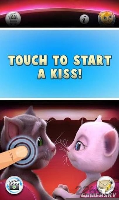 核心触摸互动:通过直接点击、滑动屏幕上的汤姆或安吉拉,触发一系列预设的甜蜜双人动画,这是体验游戏情感基调的基础。玩家可以探索不同的触摸位置和方式,发现角色多样的可爱反应。