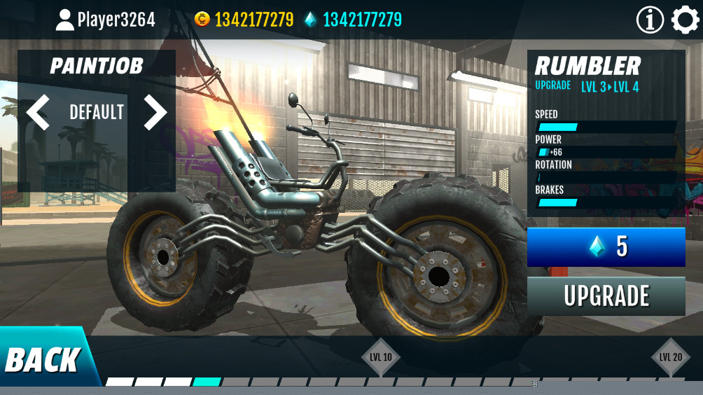 游戏提供了深度的车辆改装与定制系统。玩家不仅可以更换引擎、排气管、轮胎和悬挂系统来实质性地改变车辆性能,还能自由调整车身涂装、贴花甚至车架结构。改装不仅影响外观,更直接关联到车辆的操控手感。更换抓地力更强的轮胎可以提高过弯稳定性,但可能会损失一些沙地路面的灵活性;调整悬挂可以让你在落地时更平稳,但也可能影响连续弹跳时的响应速度。