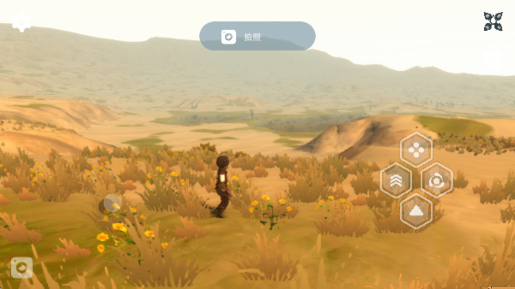 玩法核心是自由探索与环境互动。玩家使用虚拟摇杆控制角色在沙漠中任意行走、奔跑、攀爬。遇见陡峭岩壁可以尝试寻找攀爬路径,遇到高差地形则可纵身跃下,或在半空展开滑翔翼享受御风而行的快感。探索的动力完全源于好奇心——远处那片闪着微光的是什么?山脊后方传来奇特声音的源头何在?