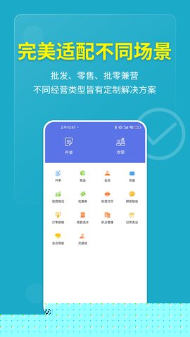 日常收银操作非常直观:在APP主界面点击收银进入收银台,通过扫描商品条码或手动搜索添加商品到购物车,所有商品会实时计算总价。顾客结账时,点击结算,选择对应的支付方式(如微信、支付宝、现金等)。如果遇到顾客需要分次支付或部分使用储值卡,可以使用组合支付功能。若交易中途被打断,可点击挂单暂存当前订单,待处理完其他事务后,从挂单列表中取出继续完成结算。交易成功后,如果连接了蓝牙打印机,可以一键打印小票。