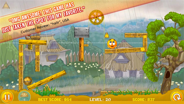 物理原理的应用是通关的核心技能。利用三角形的稳定性搭建支撑架;用绳索悬挂重物作为可摆动的盾牌;通过精确计算角度和位置,让几个车轮构成一个连锁传动装置,将远处的炸弹冲击力转化为推动橙子的精准动力。每一关都是一次对物理直觉和逻辑思维的小测试。