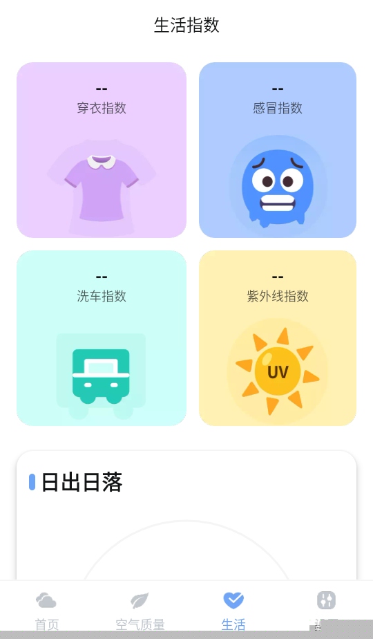 生活指数综合指南:系统根据实时气象数据,自动生成并每日更新包括洗车、穿衣、运动、钓鱼、感冒风险在内的多项生活指数,以直观的分数和文字建议,指导用户的日常生活安排。