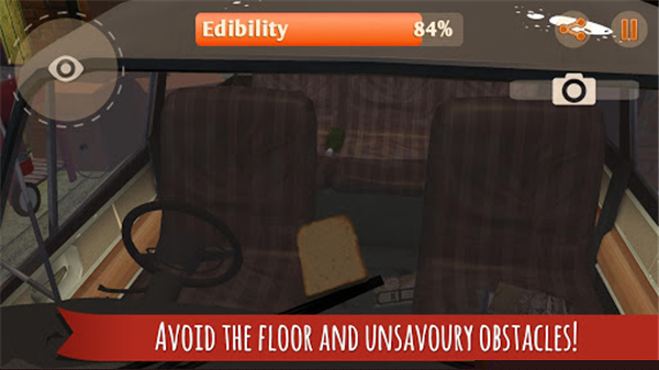 应对环境威胁与状态管理。玩家需时刻留意面包的清洁度状态,主动避开污水、灰尘和宠物。面包暴露在空气中会逐渐变干变硬,影响移动能力,需要规划路线,顺路找到奶酪、黄油等物品进行涂抹,以维持最佳状态。