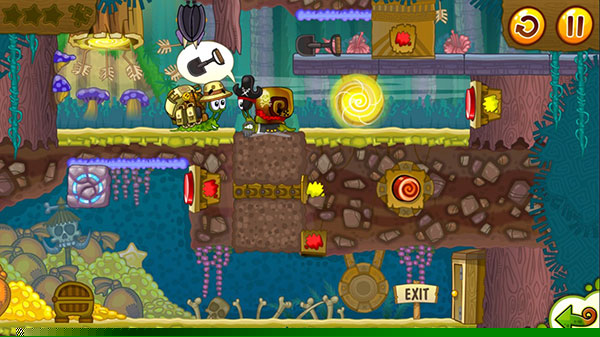 环境解谜与机关互动:面对断崖、陷阱或怪物时,仅控制鲍勃启停是不够的。玩家必须点击场景中高亮显示的机关,按下按钮来升起桥梁、拉动杠杆打开闸门、移动挡板搭建通路等。许多关卡需要玩家按照特定顺序触发多个机关,或利用鲍勃自身的重量来压住开关,形成连贯的解谜链条。