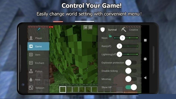 资源生成与状态管理:突破常规资源收集的限制,玩家可以按需生成任何游戏内的物品、方块或实体,从基础的木材石头到稀有的钻石下界合金,极大支持了创造性项目的实施。玩家角色的生命值、饥饿度、经验等级等状态参数也可以进行精确的设定与锁定。