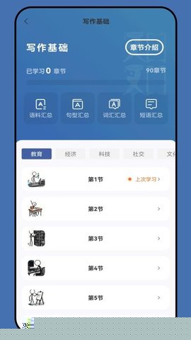 1. 渐进式知识图谱训练:应用内部构建了完整的考研英语写作知识图谱,将复杂的写作能力分解为词汇、句型、段落和篇章四个核心层级,并提供针对每个层级的专项训练模块,确保用户能够由点及面、系统性地攻克写作难关。