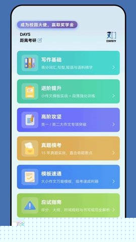 1. 与考研趋势实时同步的内容库:依托专业的教研团队,应用内的题库、范文及模板均持续更新,确保所有学习材料与当年考研英语作文的命题趋势、热点话题和评分标准变化保持高度一致,让备考更具前瞻性和针对性。