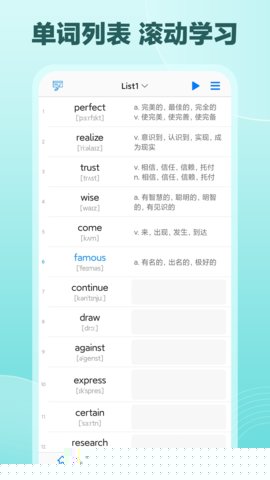 3. 沉浸式多感官学习环境构建:软件创新性地集成了背景音频播放与音频混合技术。用户可以在关闭手机屏幕或切换到其他应用(如浏览网页、处理邮件)时,持续收听当前学习列表单词的发音和例句,将碎片时间转化为有效的听觉复习时间。这种无干扰的沉浸模式,为学习者创造了全天候的语言输入环境。