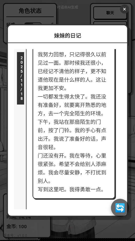 游戏为玩家提供了哥哥或姐姐的初始身份选择,这一选择会影响部分开场剧情和后续的部分互动选项。游戏内嵌了日记系统,玩家可以随时查阅Yuki以她的视角记录下的生活点滴与内心感受,这为了解角色内心世界提供了一个独特而私密的窗口。