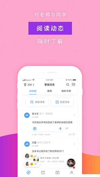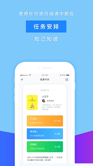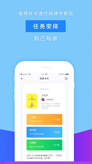 班级管理与共读任务布置:教师端拥有强大的班级管理功能,可以一键布置指定书目的共读任务,设定阅读周期。教师能实时查看全班学生的整体进度、每个人的阅读状态及认证情况,便于进行统一的阅读教学指导和过程性评价。