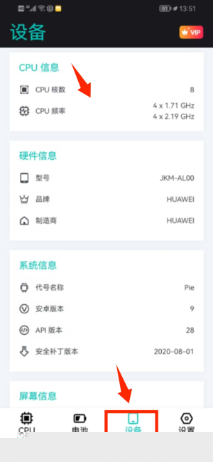 CPU设备信息是一款专业的手机硬件检测与分析工具,由深圳市马步多多科技有限公司开发打造,能够深入展示设备的详细规格与实时运行状态。这款应用不仅提供关于处理器、内存和传感器等核心组件的数据,还集成了多种实用的硬件测试功能,帮助用户全面了解手机的性能配置。清晰直观的信息呈现方式,使得普通用户也能轻松读懂专业数据,是管理和维护移动设备的得力助手。CPU设备信息可以全面检测并展示手机硬件的各项参数,包括处理器型号、核心数量、运行频率、内存大小、规格以及各种传感器信息。除了静态参数查询,还能对设备功能进行动态测试,显示屏色彩、多点触控、音频系统、振动马达、网络连接和各类端口的正常工作状态,将专业的技术指标转化为通俗易懂的显示内容,满足用户从日常了解到深度检测的不同需求。