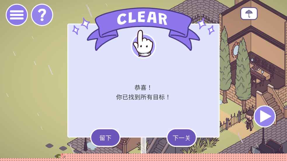 环境条件利用玩法:在部分关卡中,屏幕上方会提供切换时间(日/夜)或天气(晴/雨/雾)的按钮。玩家需要根据物品的特性,推测其可能出现的环境。寻找萤火虫显然需要切换到夜晚;寻找彩虹则需要在雨天之后切换到晴天。灵活运用环境切换是解决高阶谜题的关键。