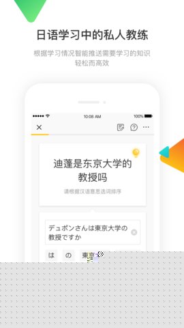 日语训练营是一款以新版中日交流标准日本语教材为蓝本构建的数字化学习平台,通过微课形式对语法结构与发音规则进行拆解分析,结合记忆曲线理论设计出渐进式训练模块,在虚拟语言环境中构建完整的知识图谱,配合即时答疑机制形成闭环学习系统,使学习者能够根据自身进度调整学习节奏,不仅系统性地覆盖了从入门到高级的完整课程体系,更通过智能化的学习路径规划与多元化的互动练习,帮助用户高效掌握日语听说读写核心技能,尤其适合准备JLPT考试或希望提升实际应用能力的学习者使用。