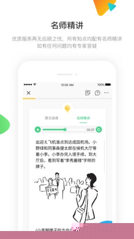 1. 情景对话模块采用人工智能语音识别技术,实时分析发音准确度并给出改进建议,模拟真实交流场景,让口语练习摆脱对教师或语伴的依赖,实现随时随地的针对性训练。
