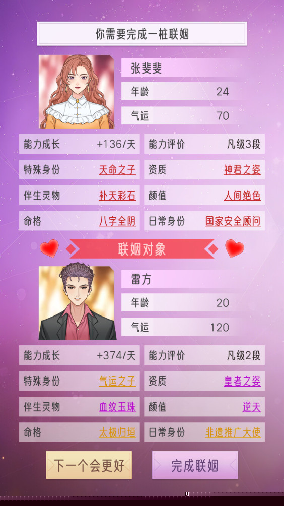 游戏构建了极具深度的家族成员养成与遗传系统。每位家族成员均拥有独立且可成长的属性面板,其能力发展不仅受后天教育投资的影响,更与先天遗传密切相关。后代的特质会以随机组合的方式继承自父母双方,精心策划的联姻,其价值可能在数代之后才通过一位天赋异禀的继承人显现出来,完美模拟了现实世界中家族基因与资源传承的不可预测性。