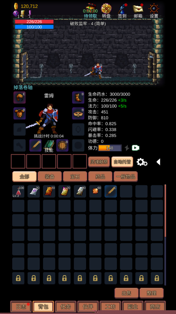 永久死亡与永久传承相结合的进度系统:游戏采用了硬核的Roguelike设定,英雄在地牢中生命值归零即意味着本次冒险旅程的彻底结束,所有未消耗的资源与未到达的层数都将清零。游戏并非全然无情,在冒险过程中解锁的新装备图纸、收集到的特殊材料、激活的伙伴角色以及积累的全局天赋点数将被永久保留。这种设计既保留了挑战的紧张感与失败的成本,又确保了玩家的每一次尝试都有所积累,推动着向更深处探索。