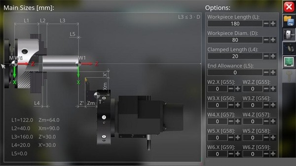虚拟对刀与工件坐标系设定功能:用户可以在软件中完整模拟真实机床的对刀流程,包括试切对刀、寻边器对刀等,并灵活设定G54-G59等多个工件坐标系,这对于确保程序在真实机床上运行的定位准确性至关重要。