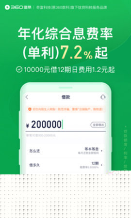 360借条是一款由奇富科技(原360数科)推出的专业线上信贷服务平台,为用户提供便捷、安全、高效的纯信用消费借款服务,依托先进的大数据风控模型和人工智能技术,实现了从申请、审批到放款的全流程线上自动化操作,用户无需提供抵押或担保,也无需前往线下门店提交繁琐的纸质材料。其核心优势在于审批速度快,最快可在几分钟内完成评估并放款,最高授信额度可达20万元。借款方式灵活,支持按日计息、随借随还,并提供最长24期的分期还款选项,费率透明,合同条款清晰。新用户注册后通常可享受专属的免息优惠。作为一家上市科技公司旗下的产品,360借条高度重视用户信息安全,采用多重加密技术与严格的数据保护体系,确保个人隐私与交易安全。无论是用于日常消费、教育进修、医疗应急还是短期资金周转都为有合法信贷需求的用户提供了一个正规、可靠的数字化金融解决方案。