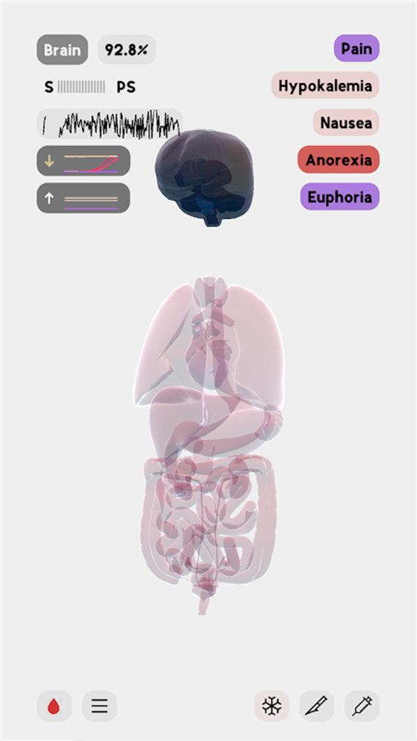 其一,在于其深度整合且具教育意义的医疗干预体系。应用中收录了超过两百种药物与激素,每一种都配有基于真实药理学的作用机制说明。当用户选择使用某种药物时,应用不仅会改变几个数值,更会尝试以可视化方式(如分子与受体的动态结合)展现其在细胞或器官层面的作用路径,将抽象的药理概念转化为可见的过程。
