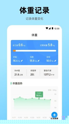 身体指标趋势追踪与健康风险评估:除了体重,用户可定期录入或通过蓝牙设备同步体脂率、肌肉量、腰围等关键身体成分指标,会绘制长期趋势线,并在数据出现异常波动(如体脂率持续上升)时给予温和提示,辅助用户早期关注潜在的健康风险。