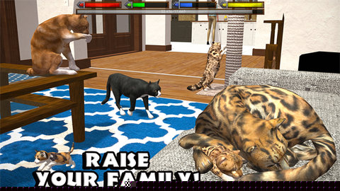 高度拟真的生态互动系统:游戏世界并非静态布景,而是一个活生生的生态系统。玩家需要观察小型啮齿动物、鸟类、昆虫的活动规律进行捕食,也要警惕野狗、狐狸等天敌的威胁。与环境中其他猫咪的互动更是充满变数,可以通过特定的肢体语言和叫声进行交流、结盟、竞争或交配,每一场遭遇都可能衍生出独特的故事。