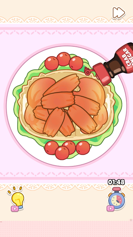 烹饪玩法作为清洁环节的自然延伸,引入了具体的制作流程。以制作三明治为例,玩家需要精确操作:将面包片放入面包机烘烤至恰到好处,依次将番茄、生菜、奶酪等配料整齐铺放,组合打包。这一过程要求一定的顺序性与精准度,为游戏增添了轻度的模拟经营乐趣。