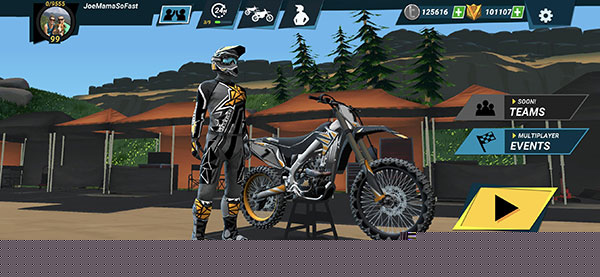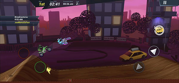 精准操控与特技执行:基础玩法围绕精准操控展开。玩家需熟练运用油门、刹车与平衡控制三者的配合,在直道上蓄力加速,在弯道中寻找最佳过弯路线。特技玩法是进阶核心,通过组合按键与滑屏手势,在飞跃坡道时触发前空翻、后空翻、神龙摆尾等动作,并确保平稳落地以获得高分奖励。