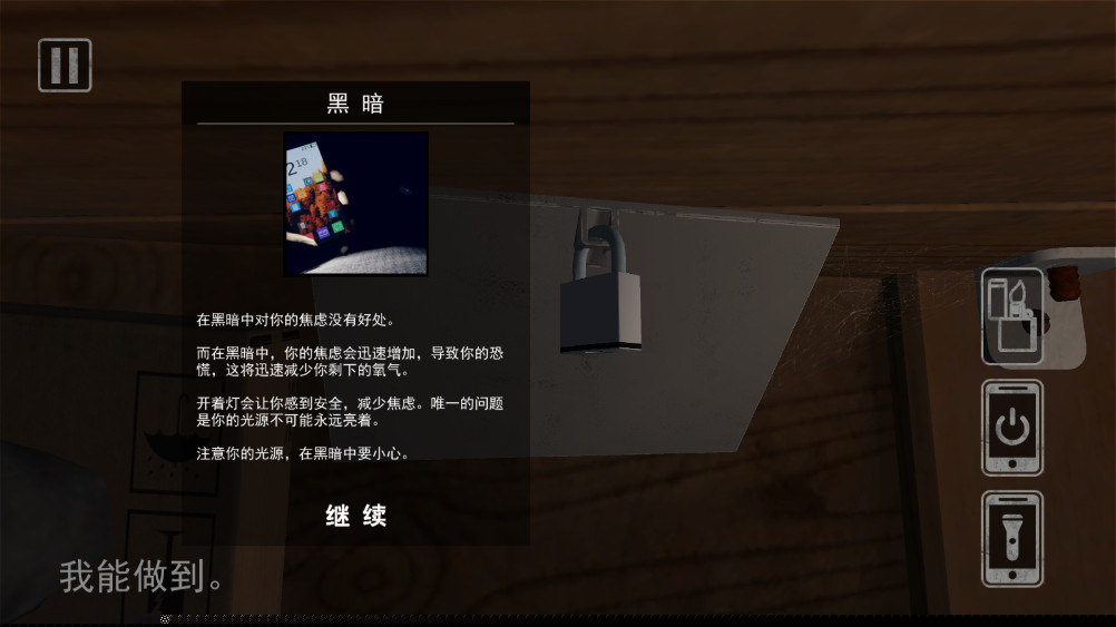 其一,是极具创新性的空间与视角设计。游戏全程锁定在第一人称的棺材内部视角,玩家无法看到外部世界,只能通过触觉(屏幕点击)和听觉来感知环境。这种设计将未知的恐怖最大化,任何一点声响、一次震动都足以让玩家神经紧绷。活动范围的极端压缩,反而放大了每一个交互细节的重要性,使玩家对棺材内的每一寸木板、每一个凹凸都变得异常敏感。