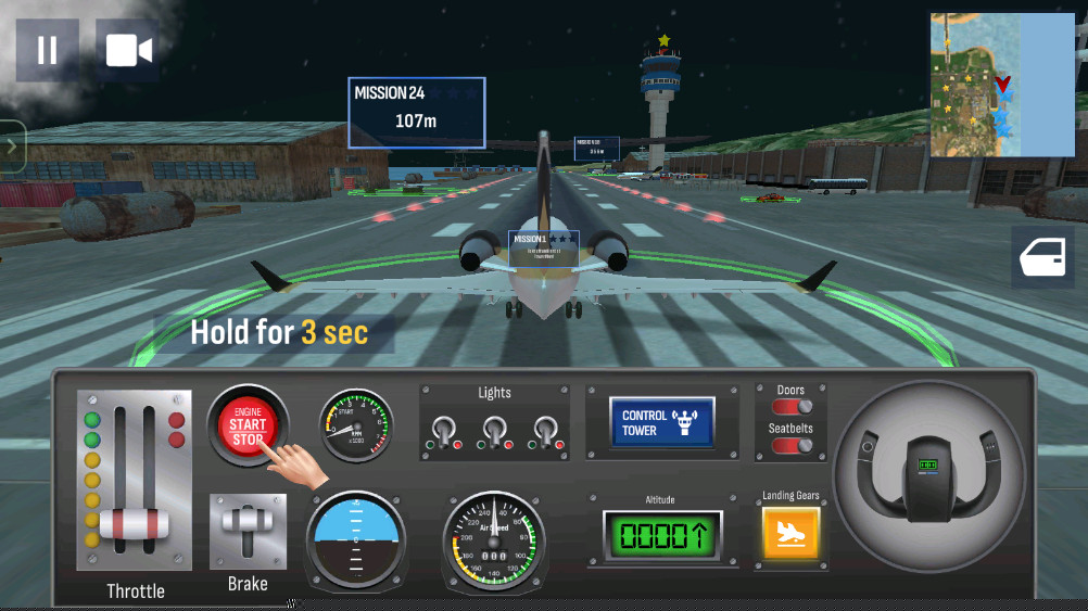 系统性飞行训练:游戏设有结构化的训练模块,从最基础的飞机姿态控制教起,逐步进阶到仪表飞行规则、盲降进近、复飞程序等高级科目。每个训练关卡都有明确的目标和评分标准,是新手玩家掌握游戏核心机制的必经之路。