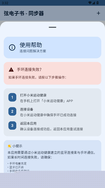 同步失败或进度未更新应如何排查?请确保手机蓝牙已开启,且手环在手机蓝牙信号的有效范围内(建议在1-2米内)。检查手机端和手环端的弦电子书同步器应用是否均在后台运行或处于活动状态。可以尝试在手机端应用内手动触发一次强制同步。如果问题依旧,重启手机蓝牙和手环设备通常能解决临时的连接故障。