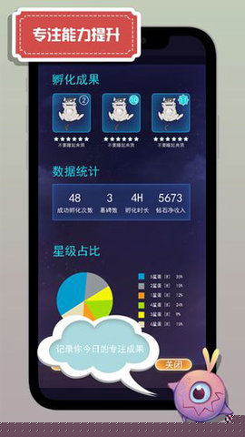 玩家通过完成每日的喂养、清洁和陪伴任务,从系统奖励中获得怪兽蛋。根据当前可支配的专注时间,选择不长的怪兽蛋进行孵化。孵化期间需确保游戏应用处于活跃状态,耐心等待小怪兽破壳而出的那一刻,迎接未知的惊喜。