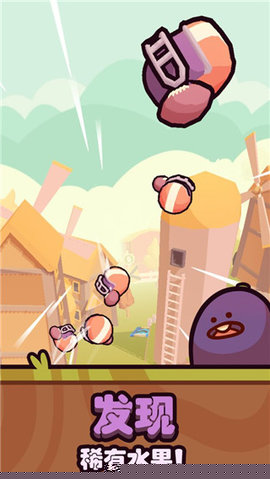 水果大炮挑战是一个独立的趣味环节。玩家将收获的水果装入大炮发射,通过向上滑动屏幕加速、点击并长按蓄力跳跃等操作,控制水果在复杂地形中滚动穿越。目标是让水果尽可能持久地停留在空中以减少新鲜度损耗,并滚出更远距离以获得更高售价。