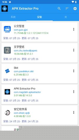 2. 批量处理能力:区别于一次只能操作一个应用的常规工具,APKExtractorPro支持用户一次性勾选多个甚至全部已安装应用,进行批量提取操作。这项功能极大地提升了效率,特别适合在更换设备前进行全盘应用备份,节省了大量重复操作的时间。