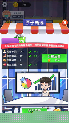 背景与音效活泼轻快,增强了沉浸式的经营体验。游戏的视听设计充满活力,直播间的热闹音效、仓库的忙碌声响与轻松明快的背景音乐相结合,共同营造出一个生机勃勃的商业世界,让玩家始终保持愉悦的投入状态。
