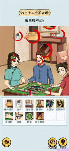 每个关卡通常始于一段简短的案件介绍文字和一幅精心绘制的静态场景图。玩家的首要任务是仔细阅读文字描述,并极其细致地审视场景图的每一个部分,包括背景、人物、服饰、表情、物品摆放、光影效果等,寻找任何与文字描述不符、不符合物理常识、逻辑矛盾或显得突兀异常的细节。这个发现矛盾的过程是游戏最基础的玩法循环。