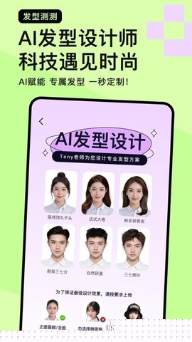 面部分析与发型推荐:基于用户上传的照片,自动分析面部轮廓和脸型,并据此智能推荐一系列可能适合用户的发型,为用户提供专业的设计方向。