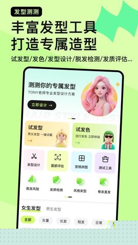发型测测是一款基于人工智能技术的发型设计应用,用户只需上传一张正面照片即可开启虚拟发型体验,内置涵盖多种风格与长度的发型库供自由选择,提供丰富的发色模拟功能包括渐变与挑染效果,系统采用3D动态预览技术让发型呈现立体旋转视角,结合面部轮廓识别与发质健康检测生成个性化分析报告,通过宫格拼图工具可横向对比多款造型效果,整个操作流程顺畅且分析结果具备较高参考价值。这款应用帮助用户在做出实际发型改变前,能够直观、科学地预览效果,从而降低试错成本,找到最适合自己的发型与发色,是个人形象管理领域的实用数字工具。