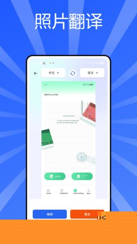 智能拍照取词翻译:通过设备摄像头对准任何带有文字的物体(如菜单、路牌、说明书、书籍),会自动检测文字区域,进行OCR识别并即时翻译。结果以悬浮窗或覆盖层形式显示,支持即指即译,阅读外文资料时无需手动输入。