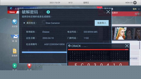 其一,游戏构建了一套高度拟真且连贯的数字调查模拟系统。从打开浏览器输入关键词进行初步人肉搜索,到利用获取的碎片信息(如生日、电话号码)在内部数据库中查询更详细的个人档案,再到结合社会工程学知识推测并破解目标的各类账户密码,整个流程环环相扣,极大地还原了网络信息追踪与挖掘的真实感与逻辑性。