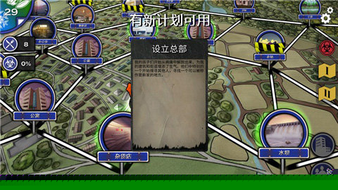 初期开局与区域选择:游戏开局时,选择总部位置是一项战略决策。推荐将基地设立在城市地图左中部区域,图书馆上方的公寓区。该区域任务点相对集中,便于初期高效完成建设任务和招募队友,因其地图面积较大,随机遭遇危机事件时也能更快撤回总部进行补给和休整。