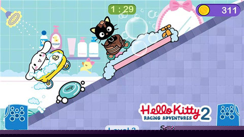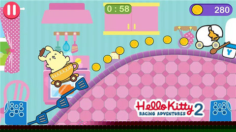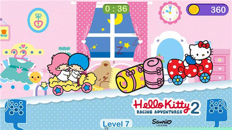 凯蒂猫赛车冒险2是一款由Abuzz公司开发并获得三丽鸥官方授权的休闲竞速手游将经典的Hello Kitty世界与紧张刺激的赛车体验巧妙融合。游戏继承了前作备受喜爱的核心框架,并在视觉表现、内容深度与操作手感上进行了全方位的革新。玩家将扮演凯蒂猫、美乐蒂、酷洛米等广受欢迎的三丽鸥明星,驾驶着造型各异的专属座驾,穿梭于一系列想象力非凡的主题赛道之中。从飘落着樱花的和风街道,到闪烁着星光的奇幻宇宙,每一个场景都如同从童话书中直接跃出。游戏采用直观的横向卷轴操作,通过简单的滑动与点击即可实现精准的转向、跳跃与漂移,兼顾了易上手性与操作深度。除了核心的竞速挑战,游戏还融入了角色养成、车辆改装以及休闲互动元素,构建了一个既适合快速体验,又能满足长期探索的甜蜜冒险世界。