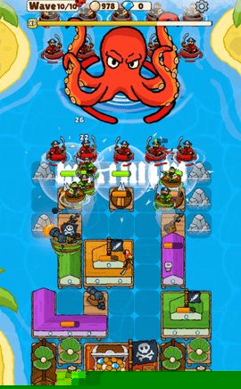 海盗防御是一款以加勒比海为背景的策略塔防游戏,玩家将扮演岛屿的守护者,抵御贪婪海盗与神秘海洋生物的侵袭,守护深藏的古老宝藏。游戏的核心在于策略规划与即时决策,玩家需要通过建造并升级各式防御工事,特别是利用独特的合并机制来强化加农炮,以应对愈发复杂的敌人攻势。每一次潮汐的涨落都可能带来新的威胁,从成群结队的海盗喽啰到装备精良的远程炮舰,甚至潜伏于深海的未知生物,都考验着玩家的布局智慧与临场应变能力。游戏世界并非静态,动态的环境因素如突如其来的风暴会改变战场态势,迫使玩家调整既定战术。这种融合了深度策略与紧张战斗的体验,确保了每一场防御战都充满不可预知的变数与挑战,让玩家在守护宝藏的征途中不断收获成就感。