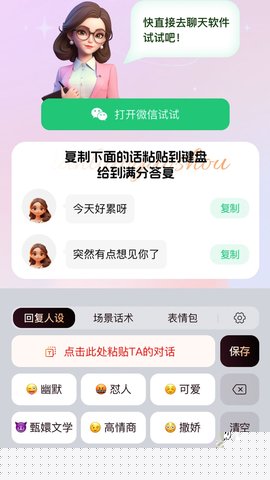 1. 动态情境适配引擎:软件的核心亮点在于其智能的情境分析能力,能够根据用户输入的对话背景、对方性格标签(如内向、幽默)以及当前关系阶段,动态推荐最可能引发积极回应的表达方式,而非简单的话术罗列。