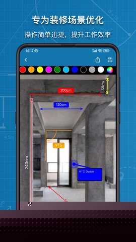 图片标记助手是一款专业图片标注工具,能够直接在照片上进行各类尺寸数据的快速标记与计算,不管是装修量尺还是商品展示都能获得准确测量结果,采用直观的标注逻辑与实时计算机制,大幅缩减传统测量记录的时间消耗,标记结果可即时保存为高清图片或发送给协作方,在服装定制、空间规划、健身记录等场景中展现出色的实用性,其核心价值在于将复杂测量流程转化为简易的视觉化操作,不仅服务于个人用户的日常测量需求,更在工程监理、产品质检、教育培训等专业领域发挥着重要作用,通过将物理空间的尺寸信息数字化,为用户提供了高效、精准的视觉化数据解决方案。